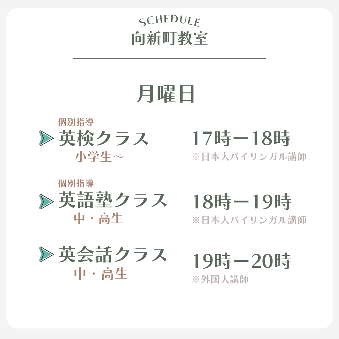 英検クラス、中学生の英語と数学クラスの個別指導(セミマンツーマン)については、学校で使用するワークを中心に、苦手克服対策などを行います。生徒の学力に合わせた個別カリキュラムを用意します!