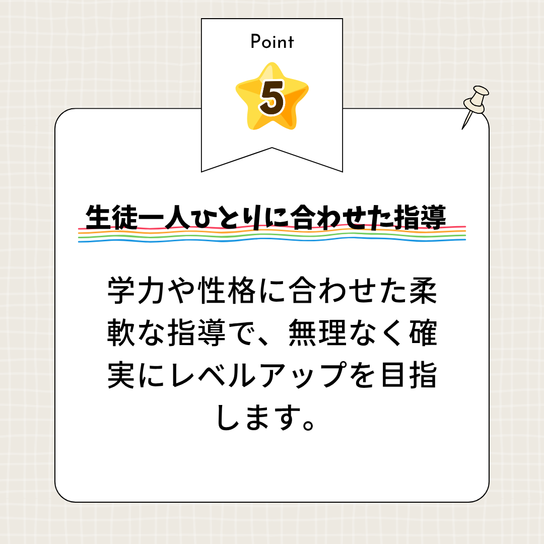 子どもたちの得意や苦手、理解のスピードはそれぞれ違います。だからこそ、「みんな一緒」ではなく、その子のペースに合わせた学びを大切にしています。